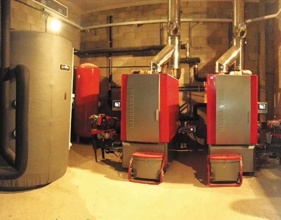 Tecnología: Calderas Biomasa Aplicaciones: Climatización Potencia Instalada: 400 kw Aporte térmico externo: NO Descripción de la aplicación: Sistema de producción energética térmica a través de calderas de Biomasa colocadas en cascada. El sistema está compuesta por dos calderas de 200kw configuradas en cascada que utilizan astilla como combustible principal. La instalación está provista por una inercia total de 10.000Litros. El agua caliente producida se reparate por una serie de aerotermos, encargados de calefactar un almacén industrial. |