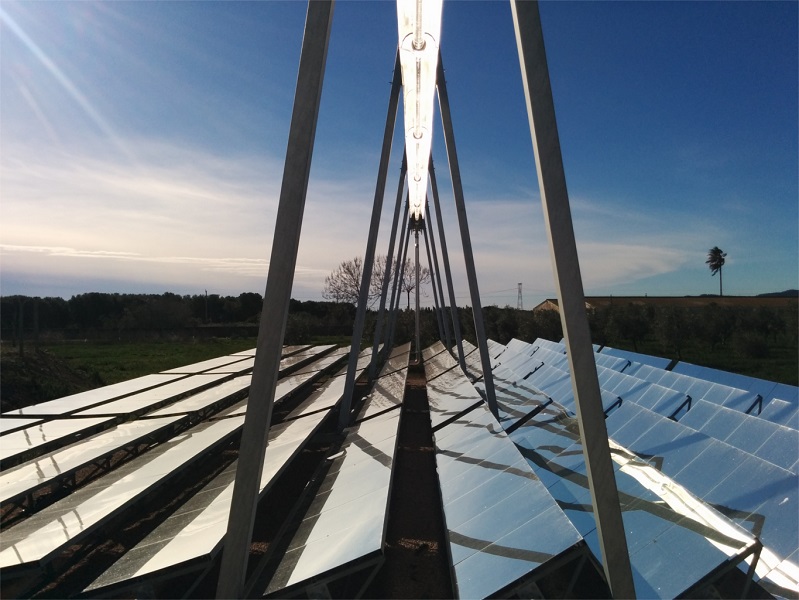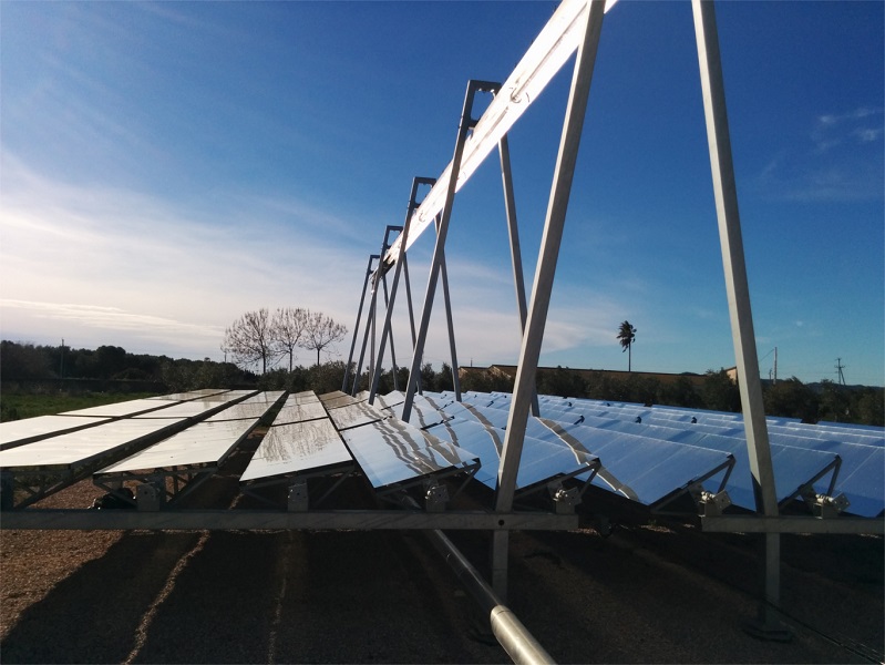 Tecnología: Sistema de Concentración Solar FRESNEL Aplicaciones: Producción de agua caliente, agua sobrecalentada, vapor industrial Temperaturas de salida: Configurable a la salida hasta 400ºC Aporte térmico externo: NO Descripción de la aplicación: Sistema de producción energética en forma de agua caliente con un máximo de temperatura para aplicación de 100ºC. El sistema está hibridado con una caldera de biomasa de la marca Hargassner. Ambos sistemas de aporte trabajan en conjunto para aportar la energía térmica necesaria para el calefactado de una maternidad porcina los 365 días del año las 24 horas del día. |