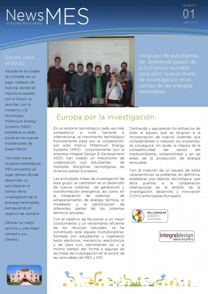 Last 17 September, Millennium Energy Systems signed an agreement with the Institut Santa Eulàlia de Terrasa to collaborate in research,
